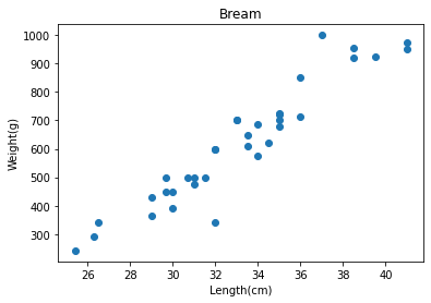bream_length = [25.4, 26.3, 26.5, 29.0, 29.0, 29.7, 29.7, 30.0, 30.0, 30.7, 31.0, 31.0,